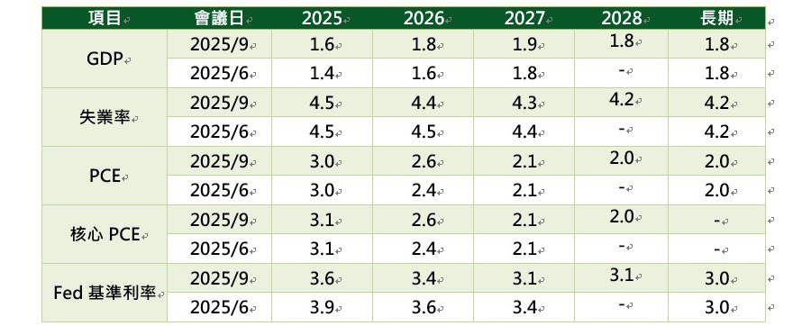 資料來源:FOMC,第一金投信整理,2025/9/18