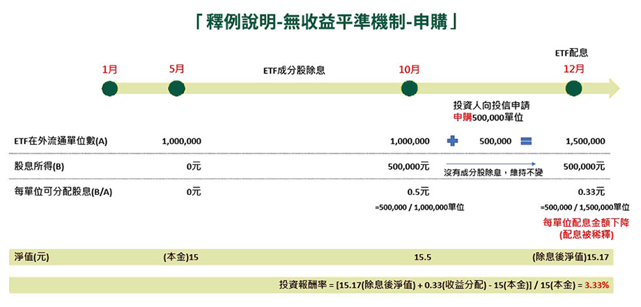 ETF收益分配時,不影響既有投資人可分配之配息權益。